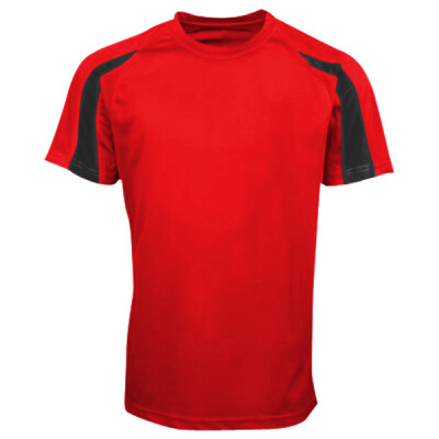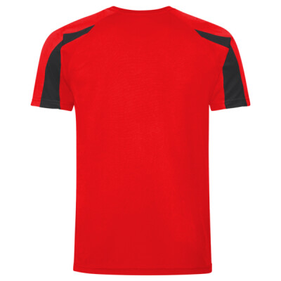 Contrast inserts on front and back sleeves. Crew neck. Raglan sleeve design. Just Cool’s own Neoteric ™textured fabric with inherent wickability. Self fabric taped back neck. Self fabric collar. Printed back neck. Worldwide Responsible Accredited Production (WRAP) certified.
